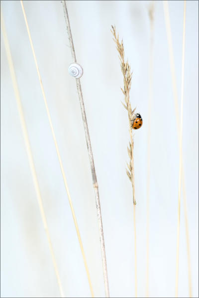 C’estlemondedes“Minimoys”.Ununiversdanslequelchaquedétailpeutapporteruneffetvisuelintéressant.Sedéplacerdequelques centimètrespeutdonneruneimagedifférente,c’estunautregenre,uneautredémarchemaisriched’enseignementslorsquel’onse prêteaujeu.Chercherledétail,nonpassurlesujetmêmemaisdansl’arrièreplanavecdesgoutelettesd’eauquiscintillentou simplementcouchédanslaneigepourobtenirunavantplanetunfondbienblanc,voilàcequipeutdonnerunebelleimageàpartir d’unsujetbasiquetellequ’unesimplefleur.Jepratiqueplusvolontiersla« Proxiphotographie »quelavraie« Macrophotographie »car j’aime mettre en scène une fleur ou un insecte dans son environnement plutôt que de chercher le détail de son pétale ou de ses yeux.J’aime mettre en scène une fleur dans son environnement plutôt que de chercher le détail de son pétale.