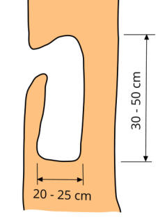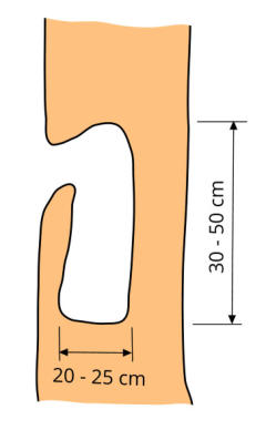 Vue en coupe d’une loge. On devine la forme en pente sur le bas de l’entrée pour favoriser l’écoulement de l’eau sur le tronc.
